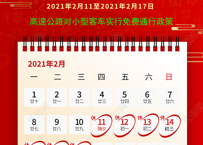 2021年高速免过路费时间是怎样的?年高速免过路费时间如下:春节:2月11日0:002月17日24:00,共计7天。清明节:4月3日0:004月5日24:00,共计3天。劳动节:5月1日0:005月...